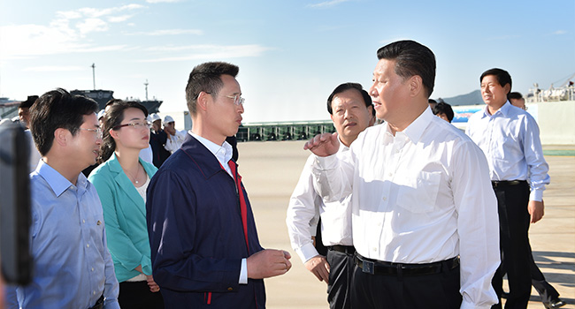 2015年5月25日,習(xí)近平總書記考察新長江集團舟山長宏國際船舶產(chǎn)業(yè)園,與長宏國際董事長李洪衛(wèi)親切交談。